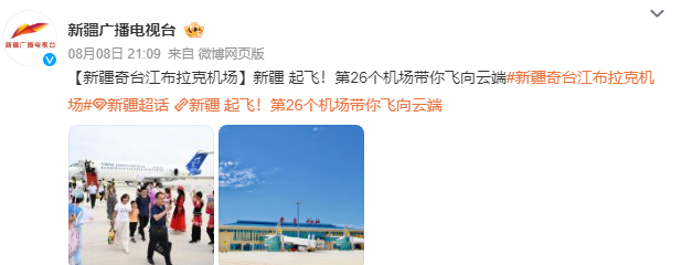 就在8月8日,奇台江布拉克机场正式通航,新疆机场又双叒叕“上新”了!