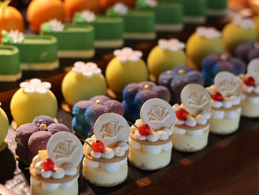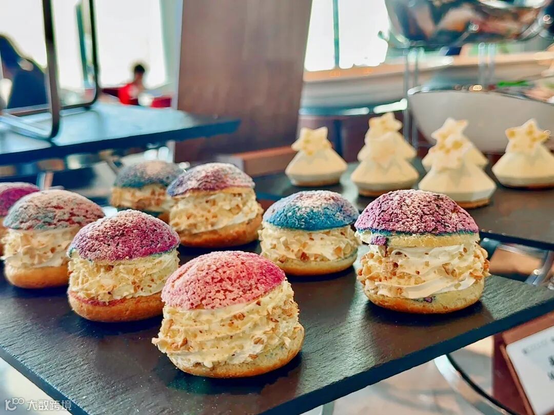 甜点更是花里胡哨,颜值一绝,花朵造型的慕斯、星球主题的奶油包…精致到舍不得吃。