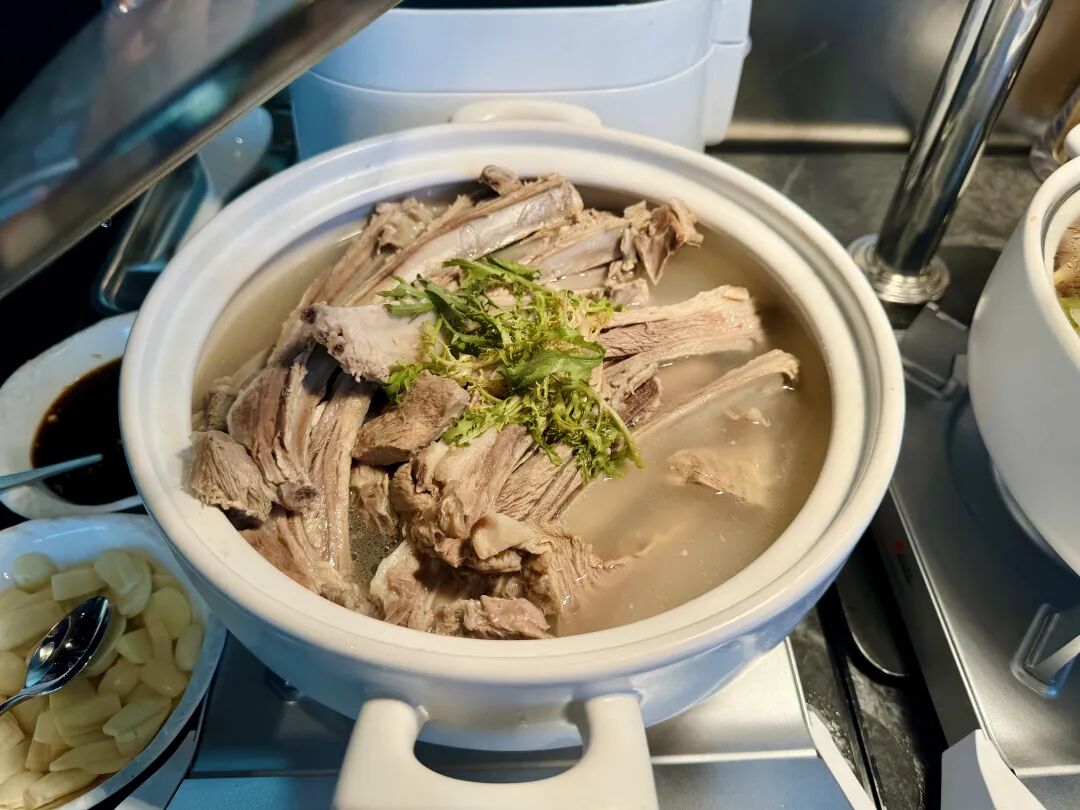 早餐的种类挺多,中西式都有,煎饺和现煮馄饨好评,可以另外免费单点班尼迪克蛋/当地特色羊杂汤/枸杞芝士蛋卷,精致开启新一天。