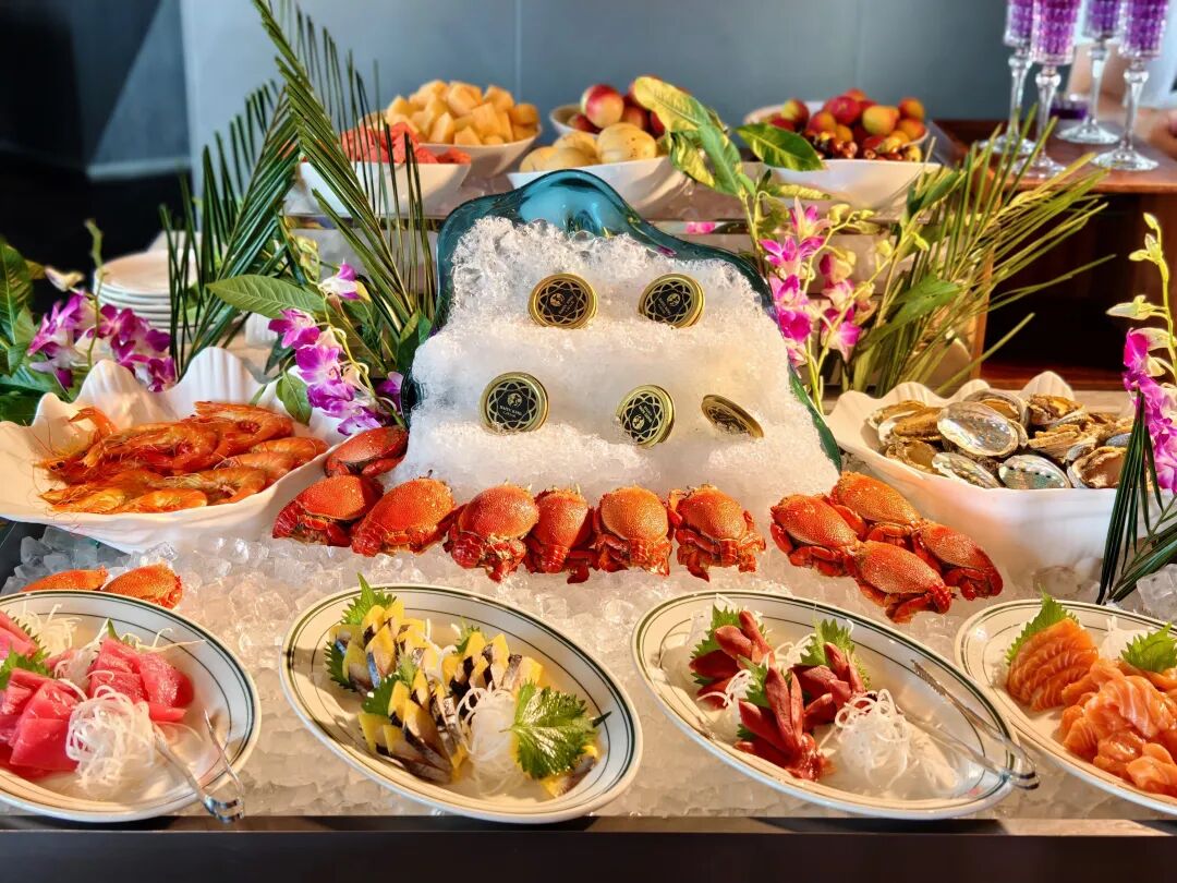 重点说说晚餐,令人震惊的丰富!自助鲍鱼、鱼子酱、海鲜刺身、烤全羊…每一个单拎出来都是能大吹特吹的程度,这里一次性集齐。