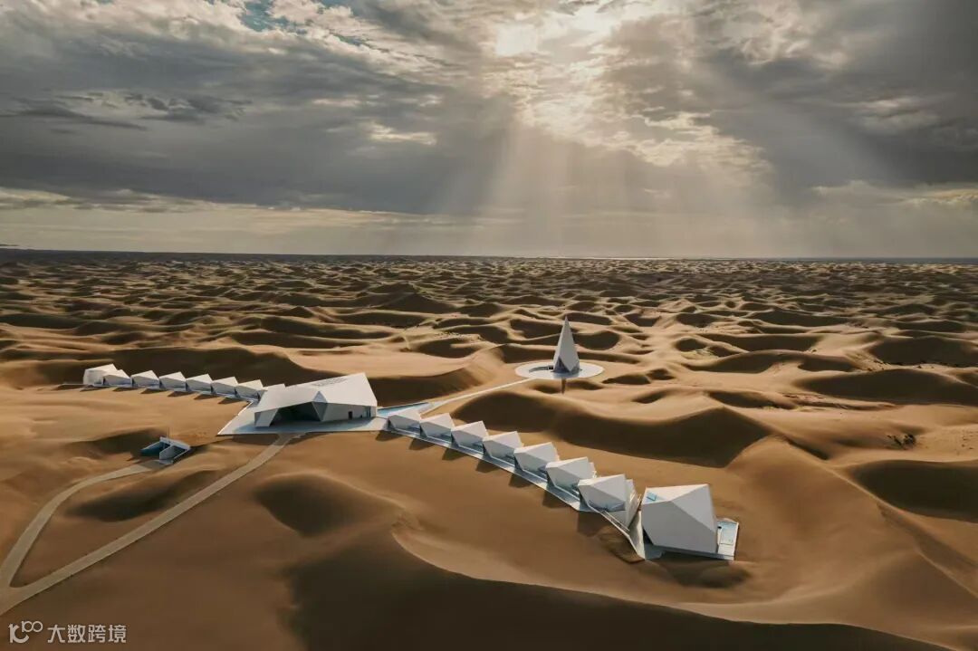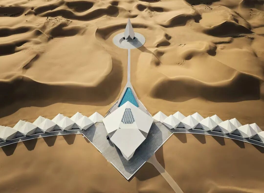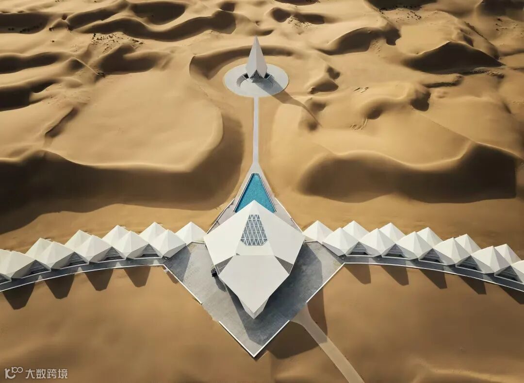 这种级别的酒店上新,我们当然要来探探。先放几张航拍图,让大家感受感受西北大沙漠的钻石震撼。