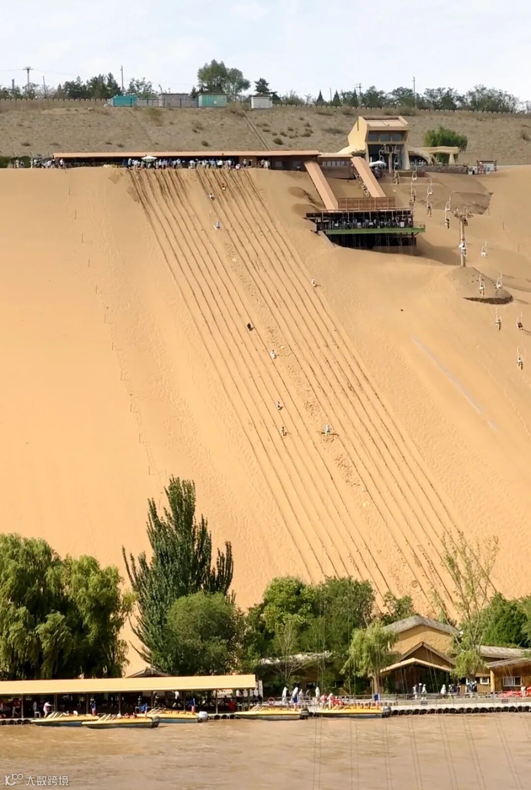 黄河区可玩的项目还有很多,鸣钟滑沙、羊皮筏子、黄河蹦极…建议大家有机会体验下鸣钟滑沙,毕竟这里是我国最长、最陡的滑沙基地,全长180米,从山顶滑向黄河,人生值得。