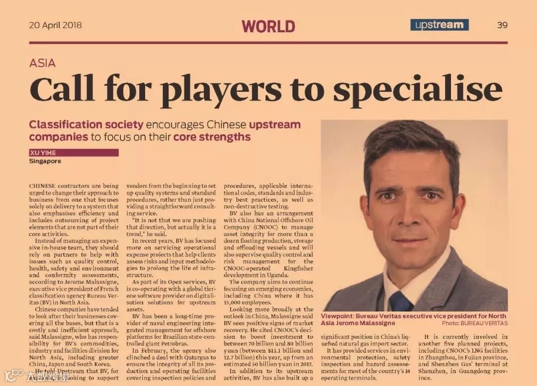 近日,必维集团北亚区执行总裁Jérôme Malassigne先生接受了国际石油天然气业界专业报刊——《上游报》UPSTREAM的专访,就第三方机构鼓励中国上游企业关注核心优势展开评论。