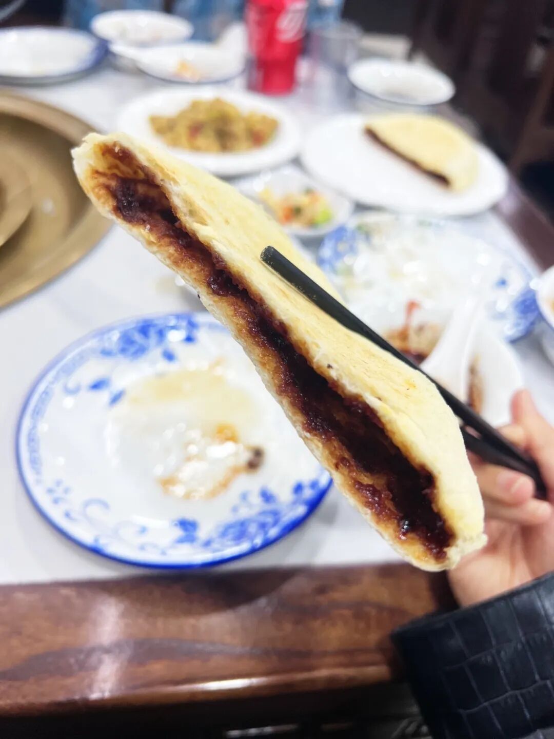 糖饼大家一定要点,做的实在是太太好吃,以至于当场吃一张又点一张,又外带了一张,转天的行程结束又来买5张,一天8份都不够吃,而且冷热吃都很香,粮食的味道搭配适中的红糖馅,到现在还依旧想念。