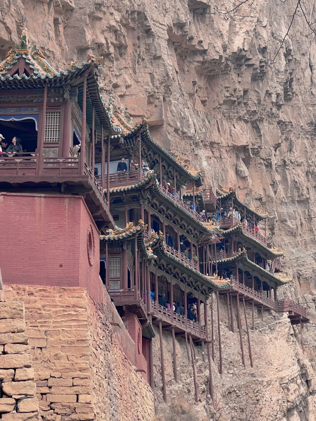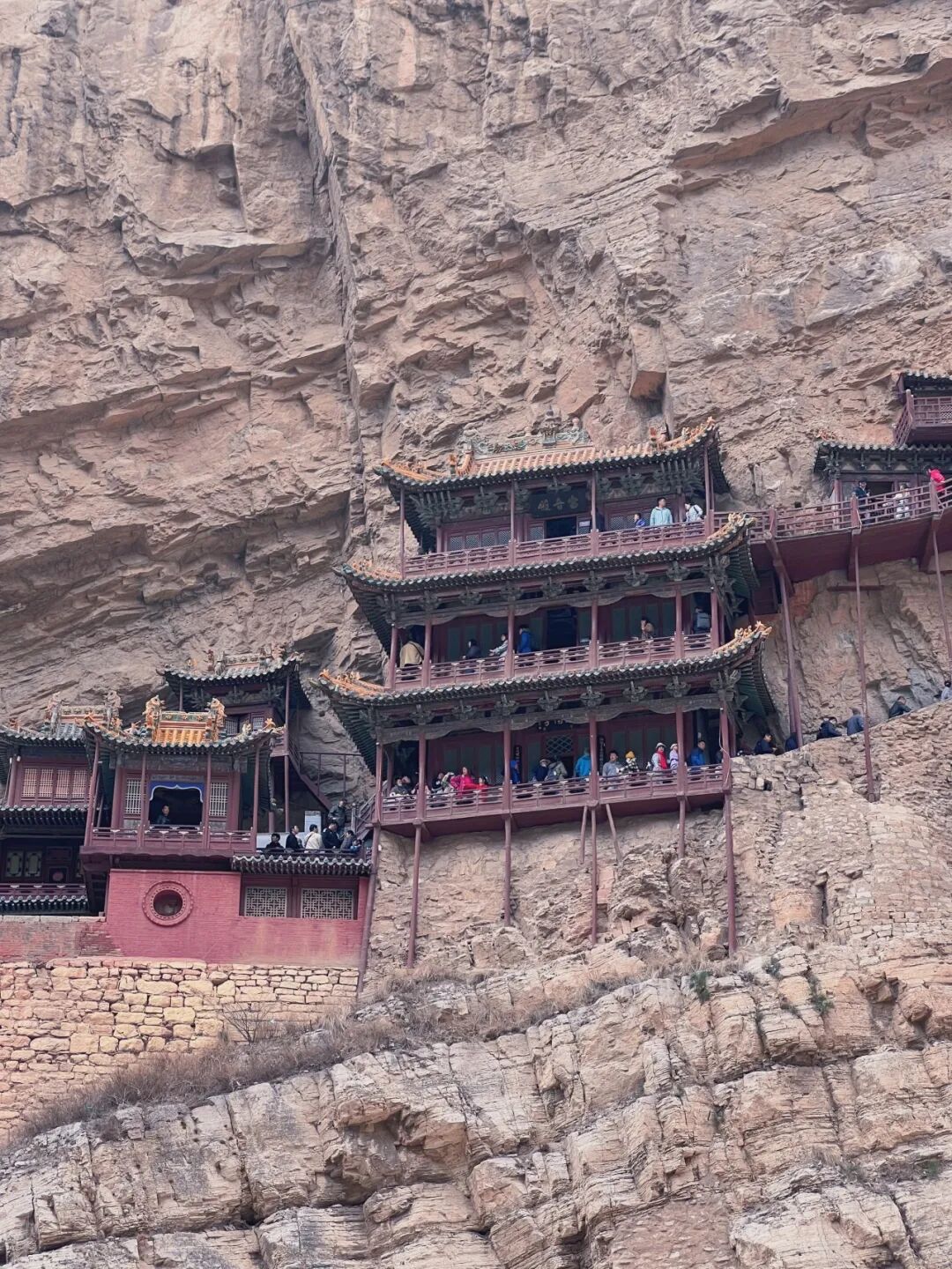 去悬空寺有两点需要注意。第一点是如果遇到周末或者节假日,登临票一定要提前买,这个票是限量的。第二点是如果你是恐高人群,建议不要上去,有几段略微吓人,要以自己可以承受的程度来决定是否登临喔!