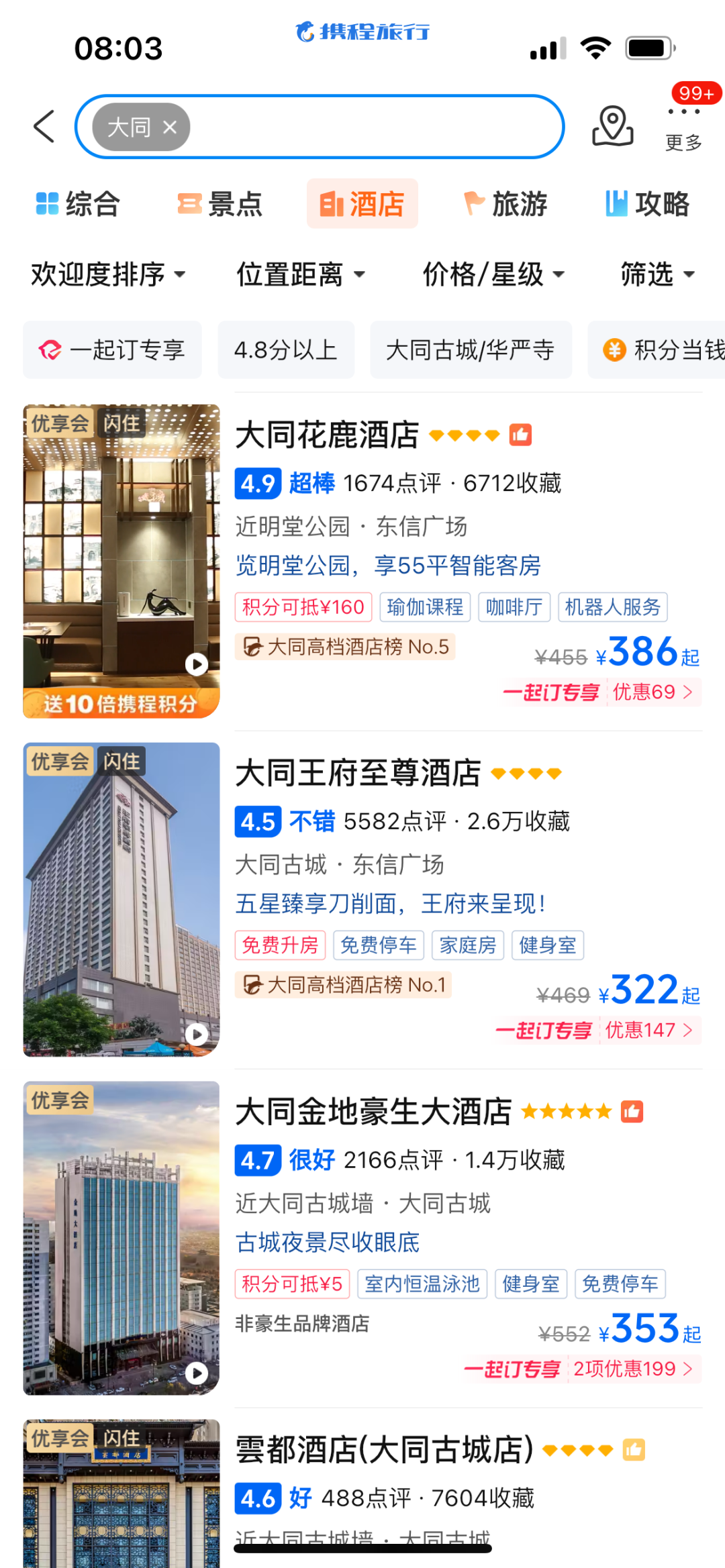 现在处于大同的淡季,避开节假日的话大同平日的酒店房价其实并不贵,300左右就能住到房间足够好,服务足够贴心,早餐足够好吃的酒店啦!