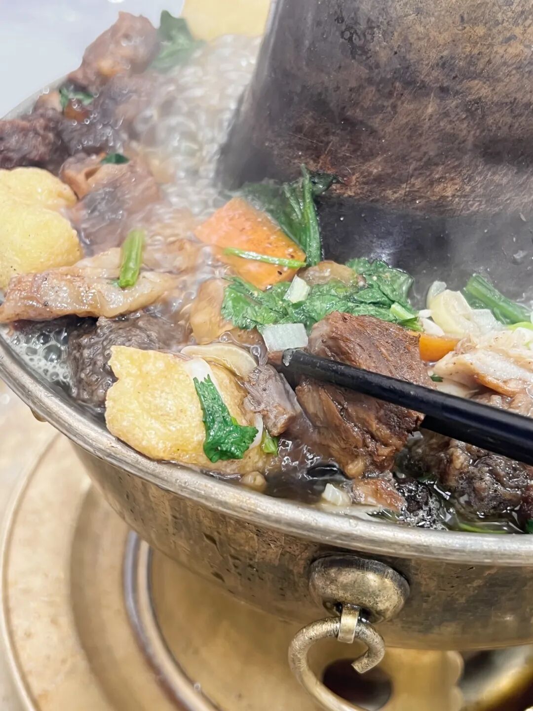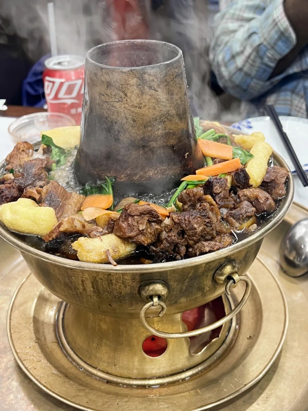 不得不夸一下自己真的很会找当地美食,进入餐厅后,老板就很热情地招呼我们,什锦锅似乎是本地的特色,除了这个就是涮肉,哦对了,他们是清真餐厅,所以不能外带食物。