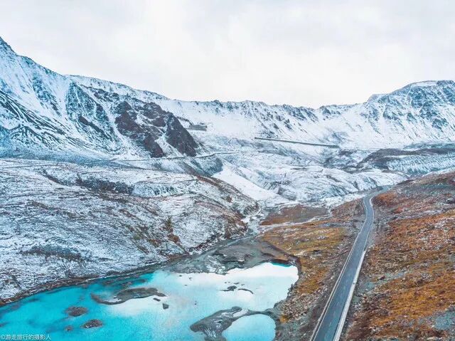天地写就黑白,阳光在此克制地着色,凑近看,雪地反射出五彩斑斓的光芒。拍照、滑雪的必打卡之地!不过高海拔地区温度低,要下车游玩的朋友记得准备厚衣服哦!