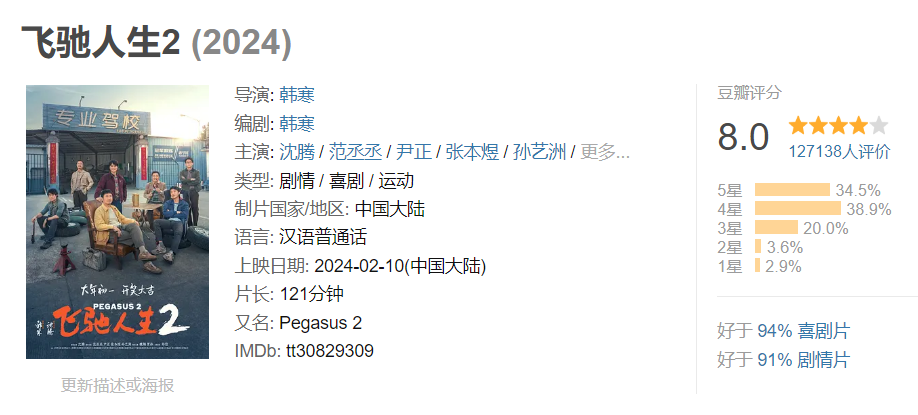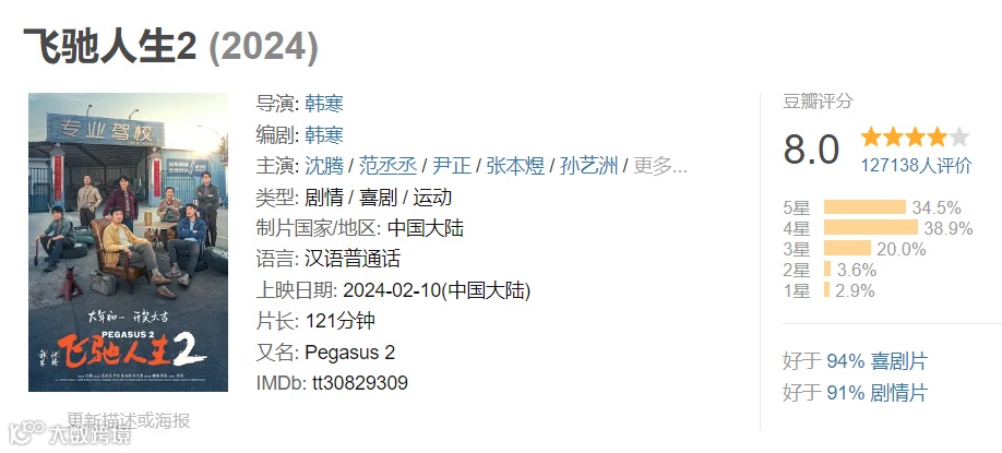 阔别五年,今年赴约!《飞驰人生2》热血继续,由沈腾、范丞丞等领衔主演,讲述冠军车手张驰携潜力新人厉小海出征最后一届巴音布鲁克拉力赛的故事!