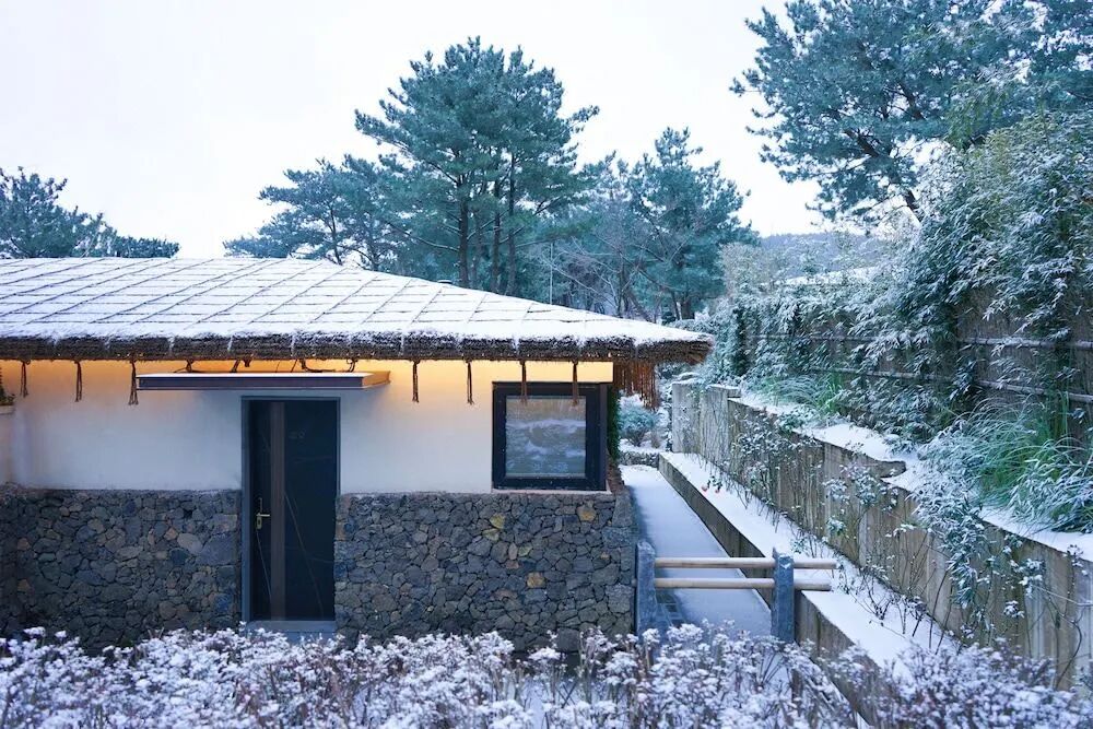 酒店客房房间全在山上的别墅中,分本馆和新馆,新馆是2022年装修的,房屋采用韩国传统房屋的设计元素,草屋加石房的设计十分接地气。然而房内却采用了大量现代化设备与装饰,真火壁炉是真的很有情调~酒店采用的宝格丽洗漱套装,SPA采用的水源来自汉拿山地下500米处经过火山岩层层过滤的地下水,无论是入住的舒适度还是体验感都是极佳!