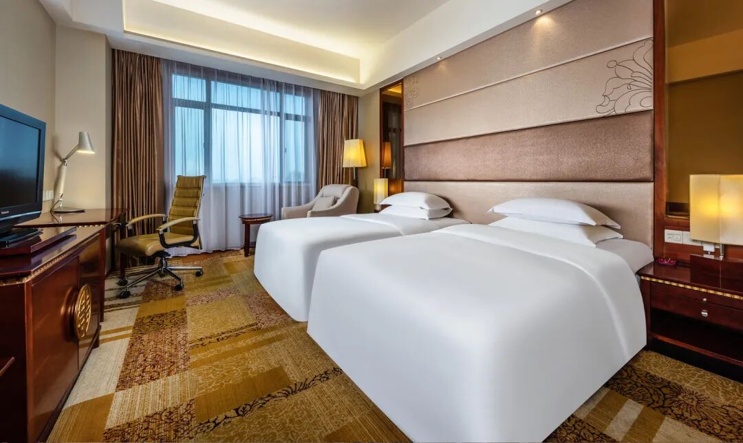 豪华房双床房 1晚+早餐 2 份/天+4-10岁儿童自助早餐 1 份+88元朋友圈餐厅专属私房养生鱼头皇代金券(不与店内其他优惠同享) 1 份+餐饮9折(午餐or晚餐) 1 份+赠送200元AHAVA Spa电子代金券 1 份+双人射箭场体验(每人15支箭,如孩子参加需孩子需满6周岁) 1 份+草系多巴胺挑战赛,包含飞盘、沙包、攻防箭等活动(提前一天预约)+半天儿童俱乐部托管仅限4-10岁(上午或下午,不含餐)