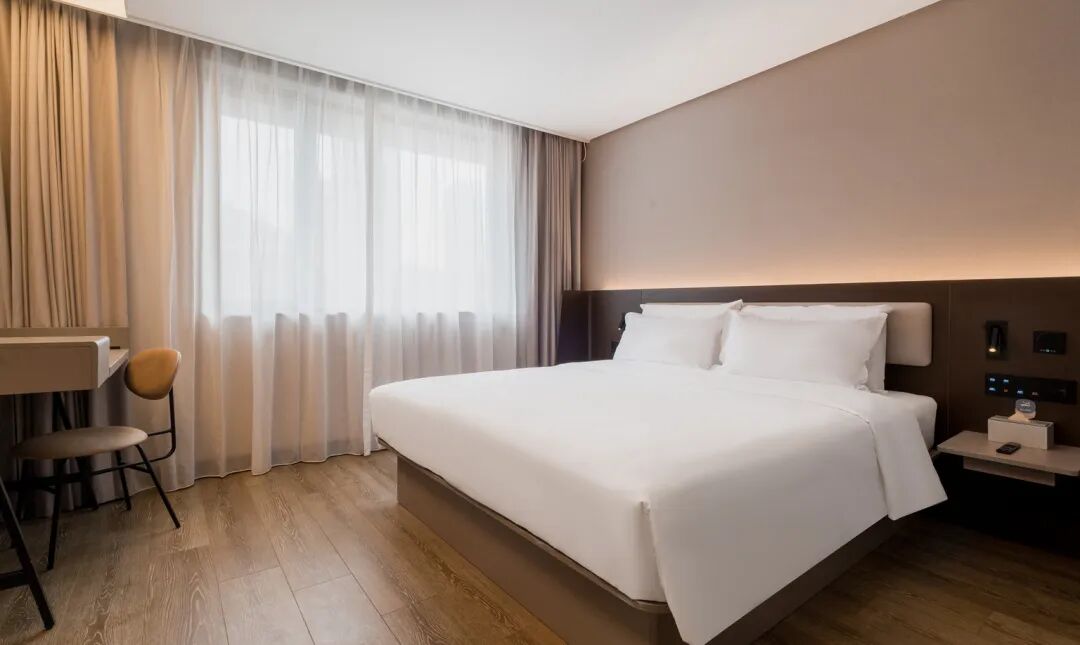 华住家的全季、桔子等品牌,你知道的,经常在景区、商场、地铁站旁的好位置,而且品质有保证。