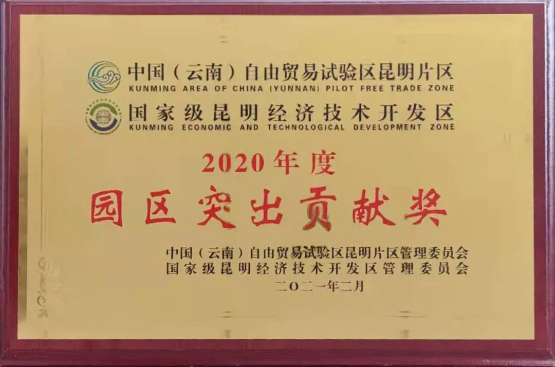 牛!智能技术获中国(云南)自贸区昆明片区“2020年度园区突出贡献奖”