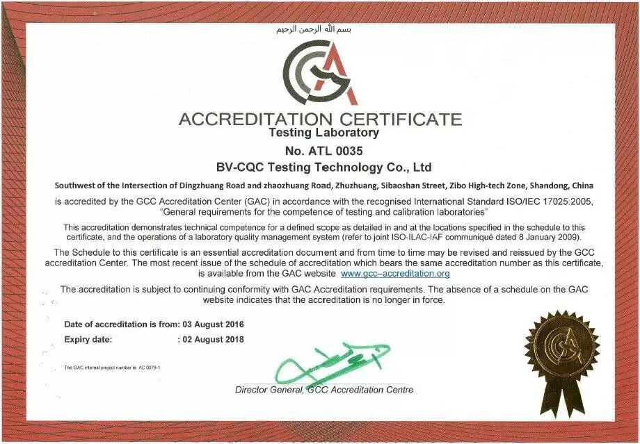 山东中认必维检测技术有限公司很荣幸的宣布,我们正式获得GCC(海湾阿拉伯国家合作委员会)认证中心—GAC的认可,成为国内第一个获得GAC认可的专业轮胎测试、认证和轮胎技术改善的第三方检测实验室。为下一步实验室成为GSO(GCC标准组织)官方认证检测实验室打下坚实基础,届时我们将成为GSO在中国唯一认可的轮胎抽样实验室,GAC对国内轮胎厂家的抽样检测将由中认必维完成,厂家也不必再将轮胎寄往国外进行相关测试,一方面会极大缩短测试的周期,另一方面也会为企业节省测试费用。