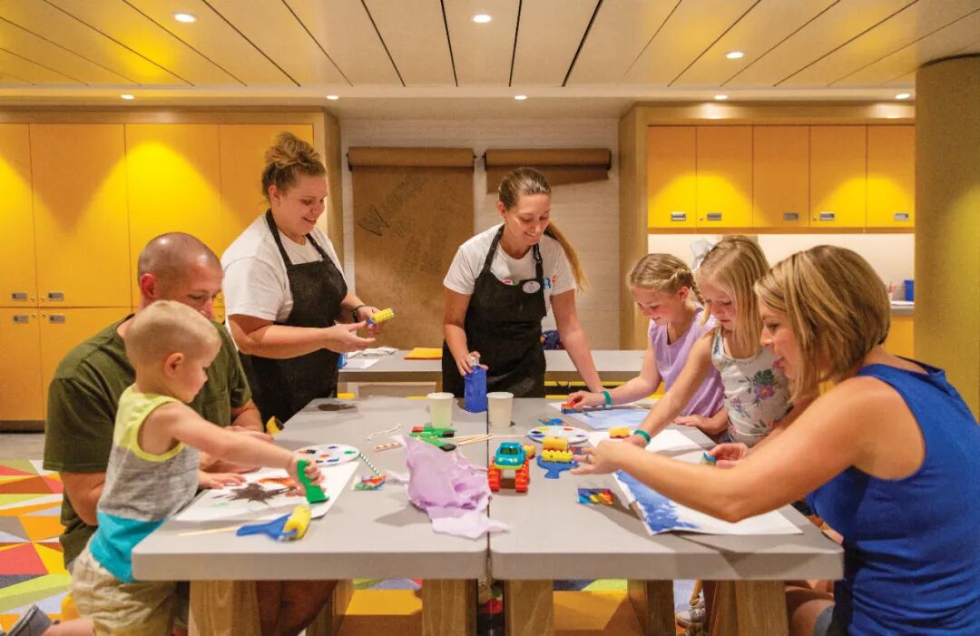 更有装置艺术等待探索,色彩碰撞的波点墙、电梯里的艺术画、随手指飘落樱花的互动屏幕、楼梯间会动的芭比娃娃......海洋光谱号上展示了众多艺术品,培养宝贝们对色彩的感知~