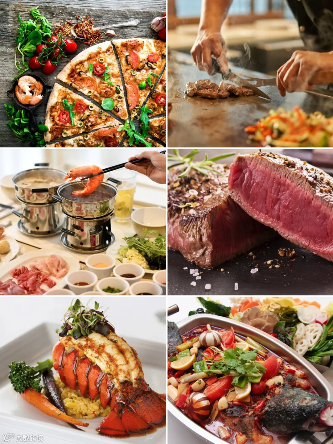 海洋光谱号上有33家环球美食任你选择,其中包含9家免费餐厅,8家特色餐厅,3家中式料理,多达1600多种中外食材,有的时候选择太多也是一种烦恼~