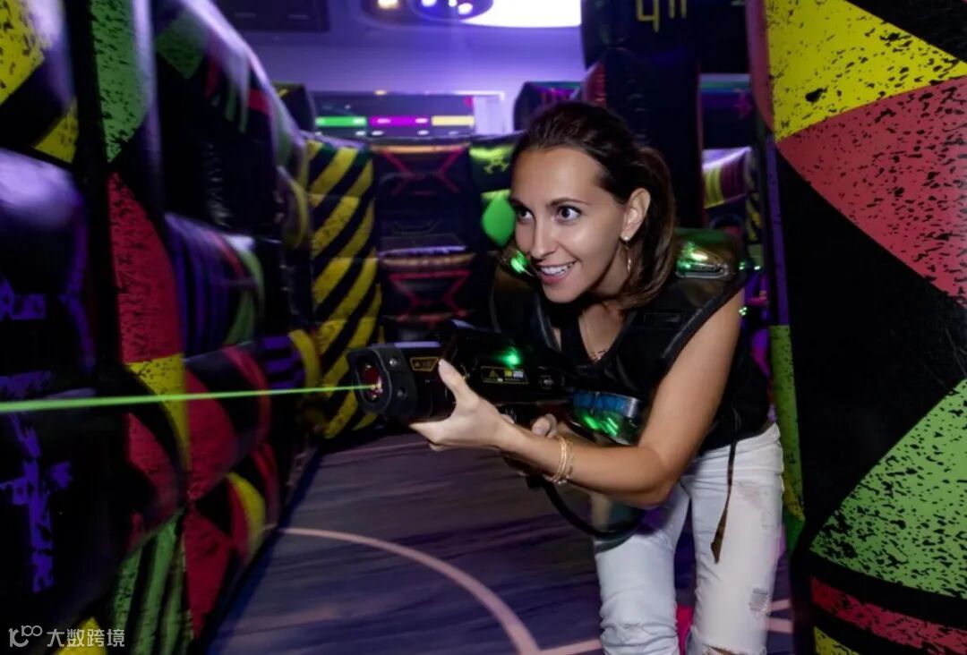镭射对决:炫酷星际装备,镭射枪扫射得分,未来世界的战斗系统,搭建与拆卸都方便的气垫围墙。