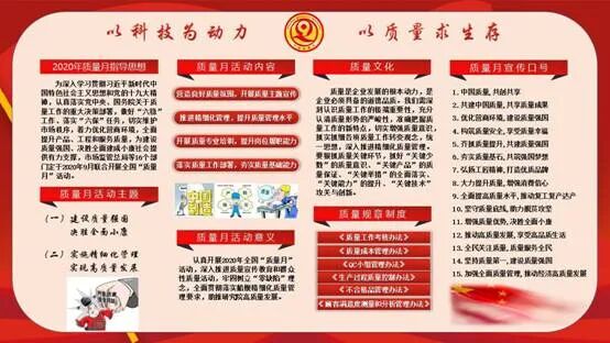 金秋时节,各单位按照昆船公司《关于开展2020年全国质量月活动的通知》要求,积极开展“质量月”活动。在厂房内悬挂宣传标语,利用局域网、视频、班前会等方式大力宣传“质量月”活动,营造“质量月”活动的氛围。围绕“质量月”主题,举办QC小组活动程序及方法的运用、质量信得过班组建设等相关质量专业技能的培训,开展实物质量抽查、工艺纪律检查等主题活动,力争以“质量月”为契机,大力提升公司全员质量意识及质量管理水平。