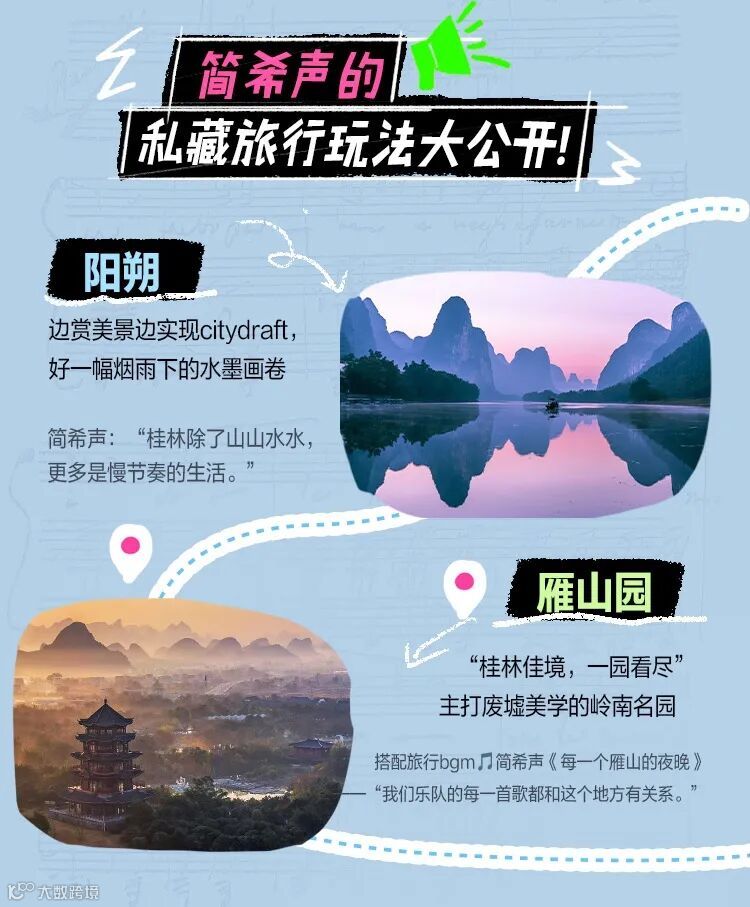 在泉州,听南音漫步千年古厝,收集世遗之城的烟火气;在桂林,边赏美景边实现citydraft,沉醉在器乐摇滚下的墨染山水间;在珠海,感受甜蜜海风,一起闯入超浪漫的漫画海岛。