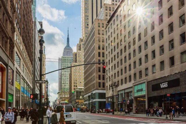 纽约曼哈顿东区的一条道路,这里的高楼栉次鳞比,坐落着众多品牌店铺与知名建筑。