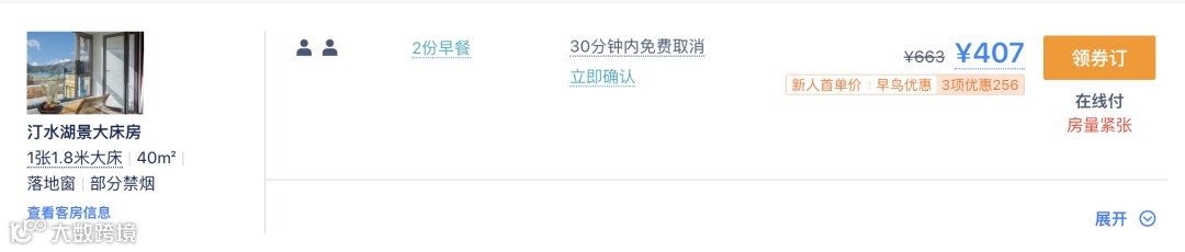 关键价格太实惠,这样正对着泸沽湖景的房间,40平只要400多,还含早。酒店全线欧舒丹洗护用品、戴森吹风机、胶囊咖啡机,配置真不赖。