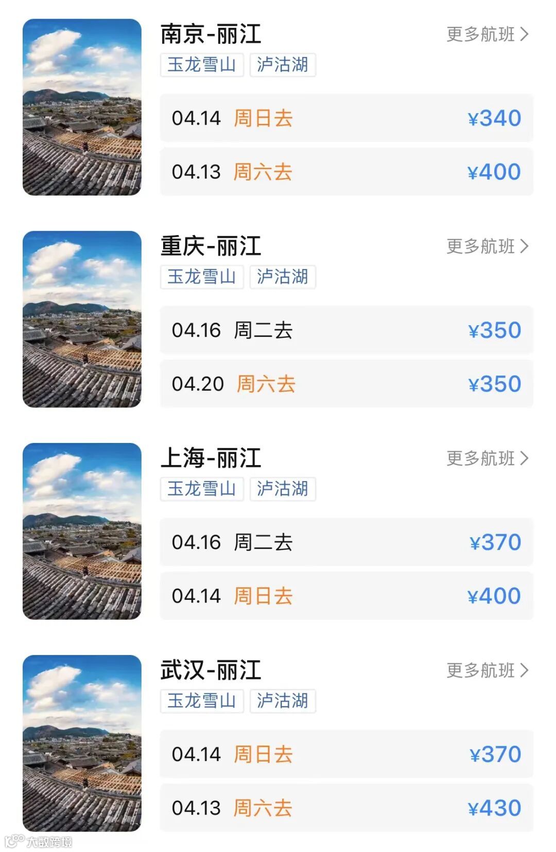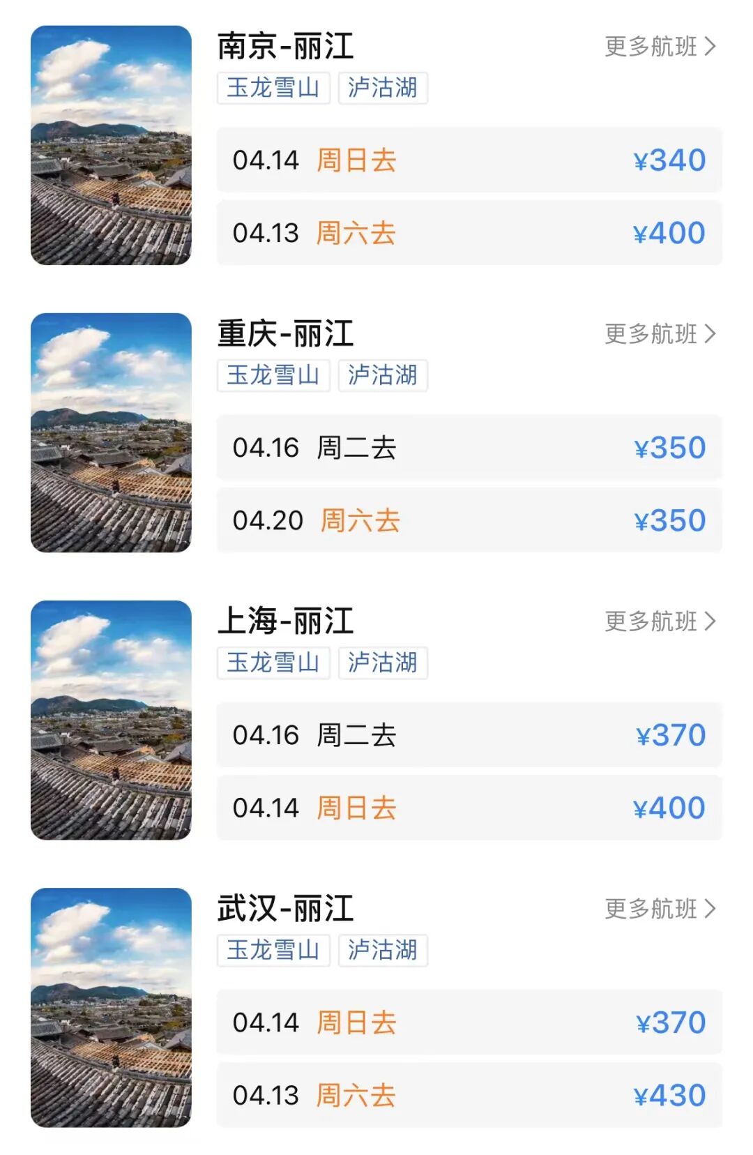 最近是丽江的淡季,全国多地飞丽江只要三四百。暑期丽江是出了名的避暑胜地,也是大旺季!如果错峰也推荐11月去玩,冬季看日照金山的机会更大。
