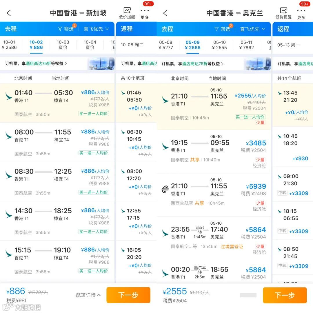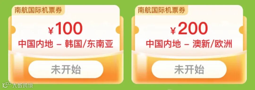 机票方面,明天10点可抢南航境外大额机票券,还有国泰机票买一送一可捡漏!