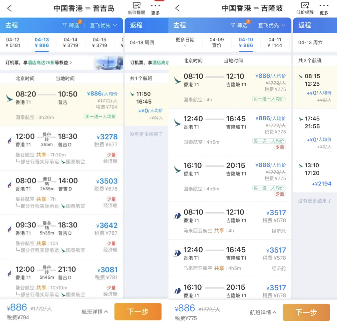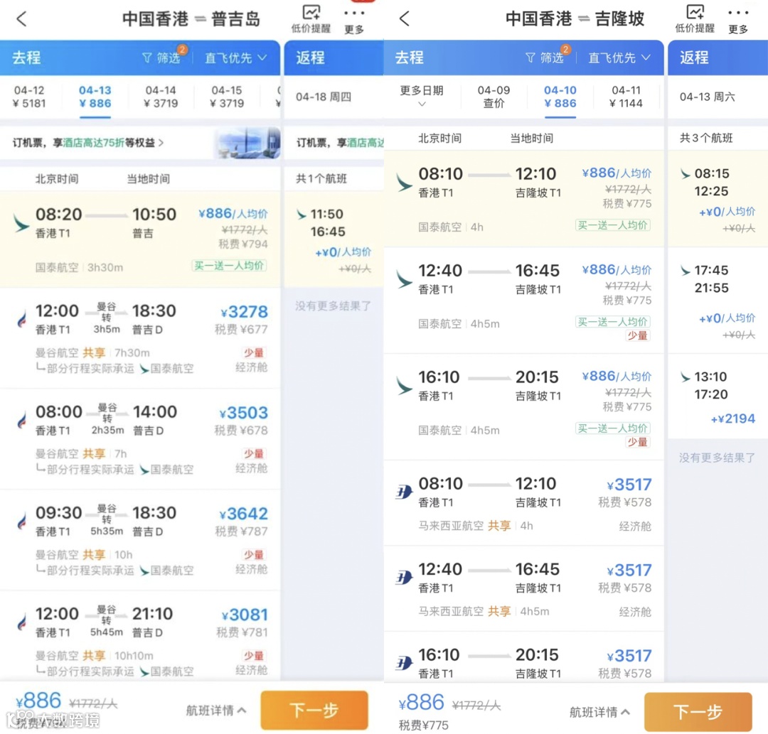直接划重点航班适用日期:2024年4月8日—2024年12月31日没错,覆盖五一、端午、暑假、中秋、国庆等所有节假日和假期目的地:共有17个城市,包括普吉岛/新加坡/巴厘岛/札幌/东京/大阪/首尔/巴黎/纽约/洛杉矶等,东南亚日航和欧美澳等热门目的地都有!国泰航空,两人一起出发,就能拿下买一送一价,每人两件23kg行李额!