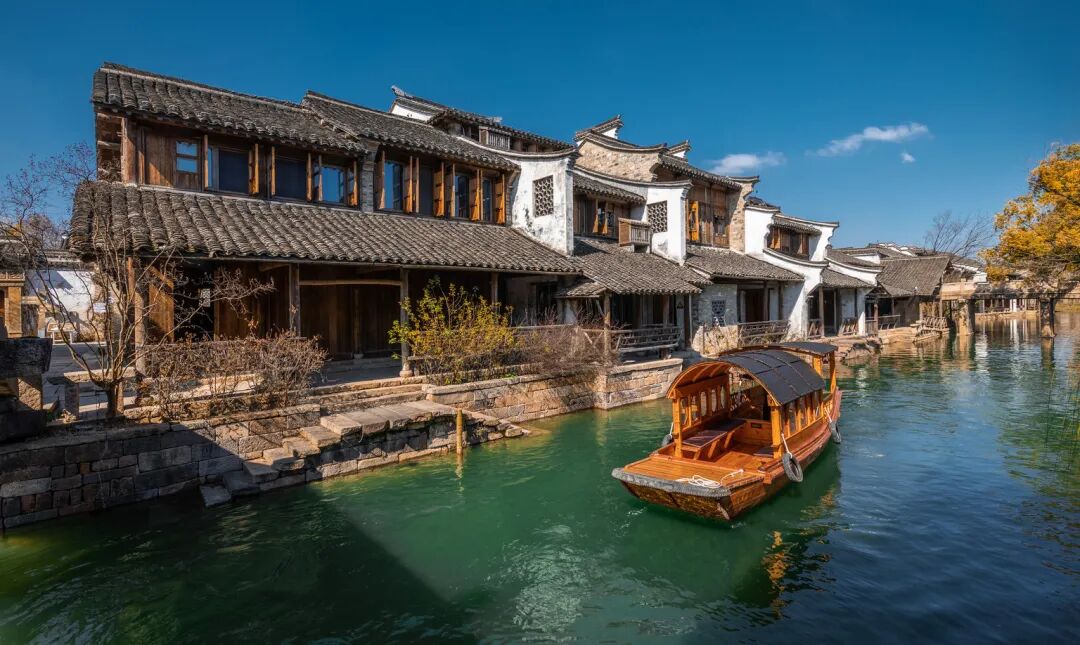去年浙江斥巨资打造了一座古镇,就在桐乡,名为濮院时尚古镇,是在原有自然村落的基础上修改建而成,桐乡站打车过来半小时。酒店位置很好,就在景区内,临河而建,门口就是小吃街。房间很大,靠着河,可以看到摇橹船经过。