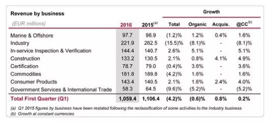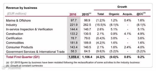 必维 2016 年前 3 个月营收达到 10.6 亿欧元,与 2015 年第一季度相比,增长 +0.2%(按固定汇率计算)。