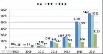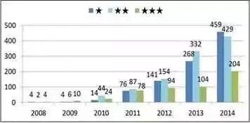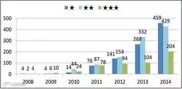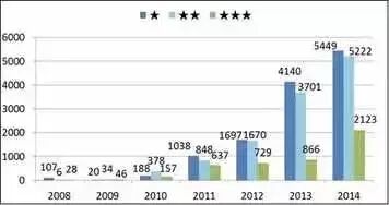 近年来,我国获得中国绿色建筑评价标识的建筑数量也逐年提升,尤其是三星、二星级绿色建筑的增长幅度都将近1倍以上,2014年新建绿色建筑面积已经超过了1亿多平方米。