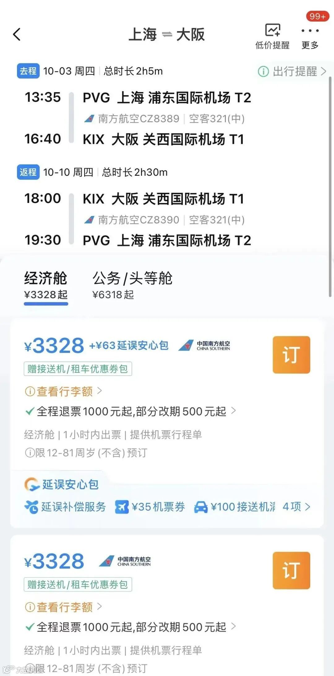 最近南航大促,国庆请几天假,3k往多返大阪,对国庆来说很难得,同期廉航红眼航班都不止这个价。