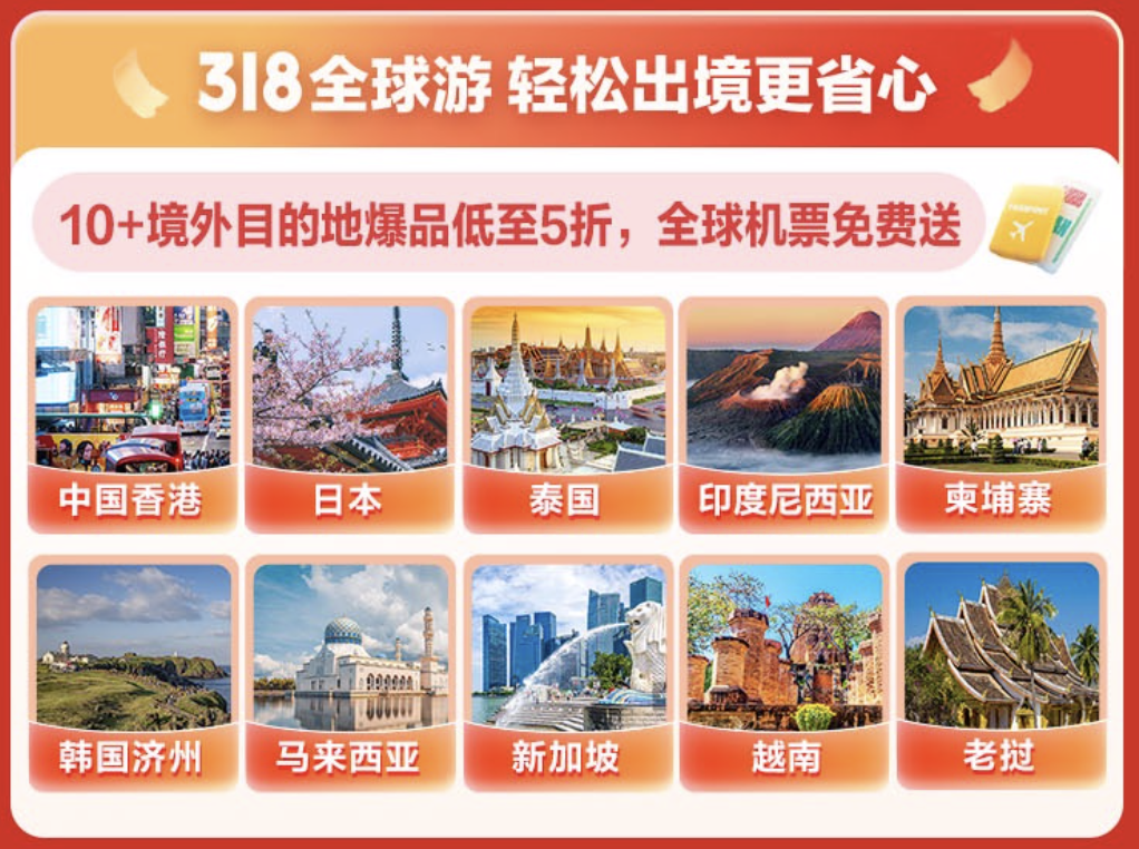 另外不少宝留言问这次318大促有哪些境外目的地会做专场大促,我们专门给大家搞了个预告,你们戳下图,具体好货蹲我们这一个月的推文!