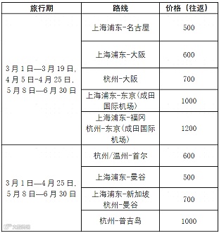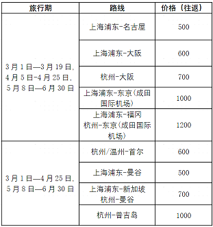 国航突发好货,仅售3天,2月28号起开始兑换,旅行期及价格如下表,价格不含税。