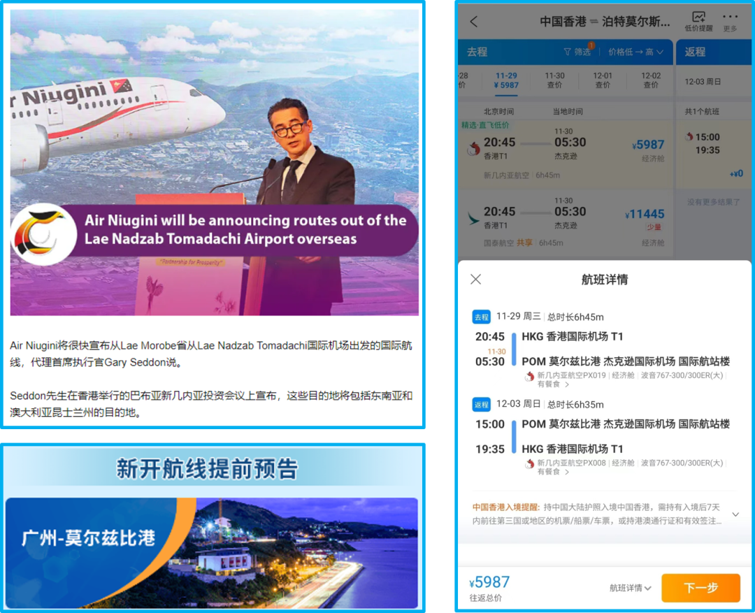 同时,他也表示是否开通广州的直飞会进一步考量,因为目前已经有香港直飞莫尔兹比港的航班了,直飞往返6k左右。