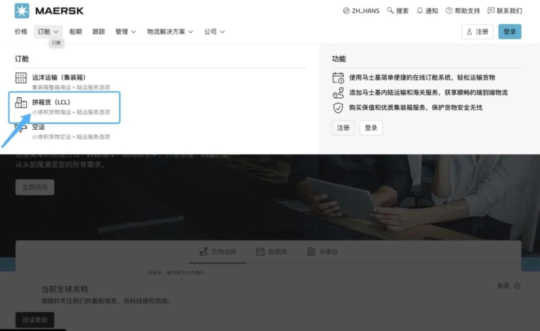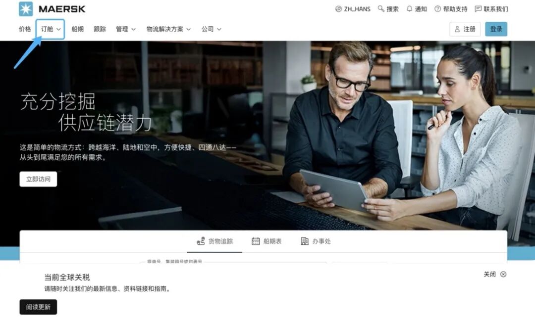 1. 进入马士基官网:www.Maersk.com.cn