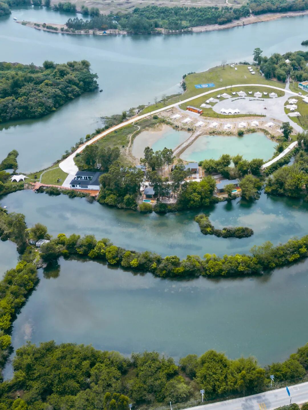 岛上各类设施一应俱全,民宿临水临树,睁开眼就是美丽的自然,露营帐篷支在草坪上,迎着月色烧烤、围炉煮茶,还备有双人皮筏艇、桨板等设备,可以泛舟水上,与鹭鸟相伴,与夕阳相依。