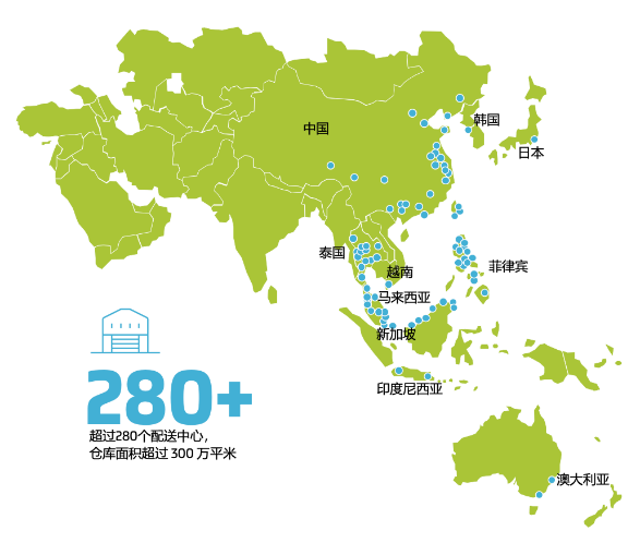 马士基在亚太区拥有超过280个配送中心 (DC),仓库面积超过300万平方米,赢得全球超400家企业信赖,助您释放全渠道卓越潜能。