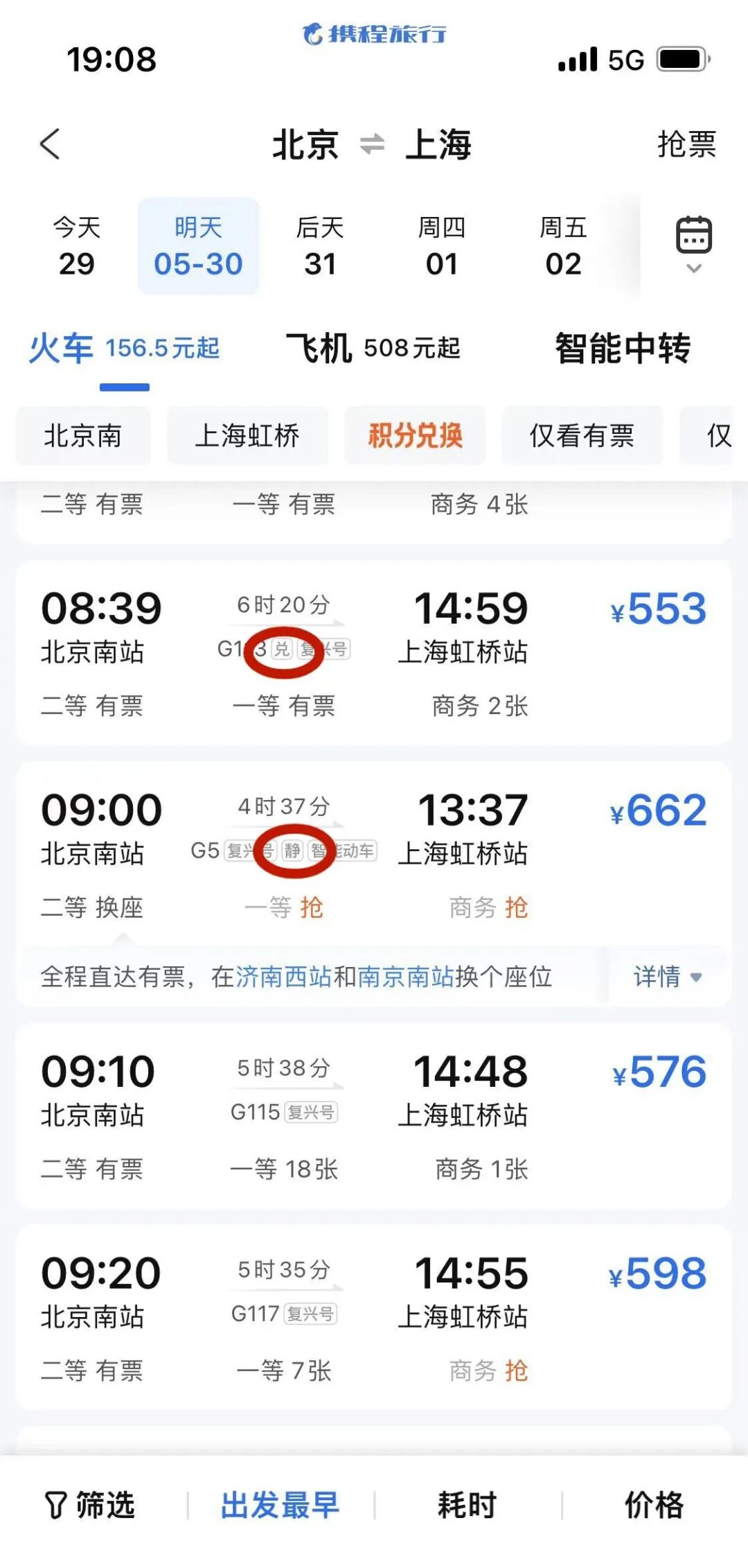 步骤二:找到带有“兑”字样的列车班次,或是直接筛选“积分兑换”的车次,并点击。(仅限直达,中转班次需分程查询)