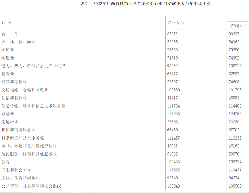 2022年度城镇非私营单位就业人员年平均工资