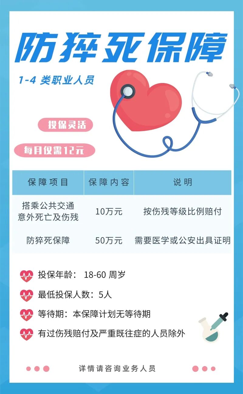2、保障性价比高: 1-4 类职业人员,仅需12元/月