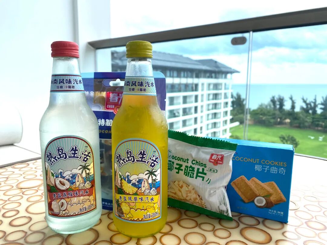 卧室里还摆放着阿福在海上营救美人鱼时打开的“百宝箱”(客房迷你吧),箱内放置了各种海南土特产,最喜欢的是荔枝味汽水,一口封神,清新爽口,大口咕噜咕噜就很解渴!