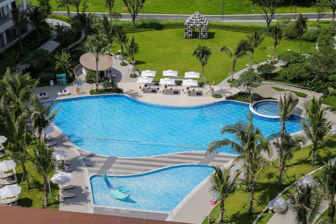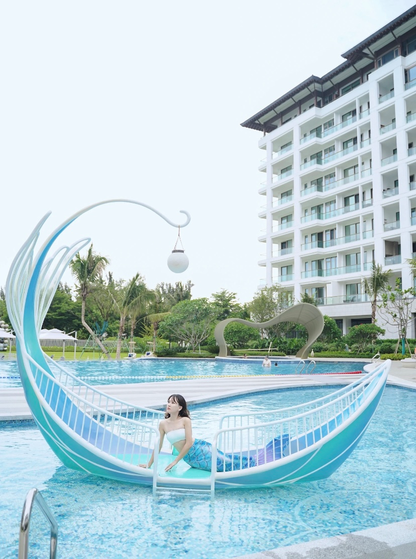美人屿户外泳池,是美人鱼尾的形状,在阳光好的时候,波光粼粼的,格外好看。带我们参观的小姐姐说,酒店可以提供美人鱼的衣服,在这拍一组美人鱼照片是可以炸圈的!