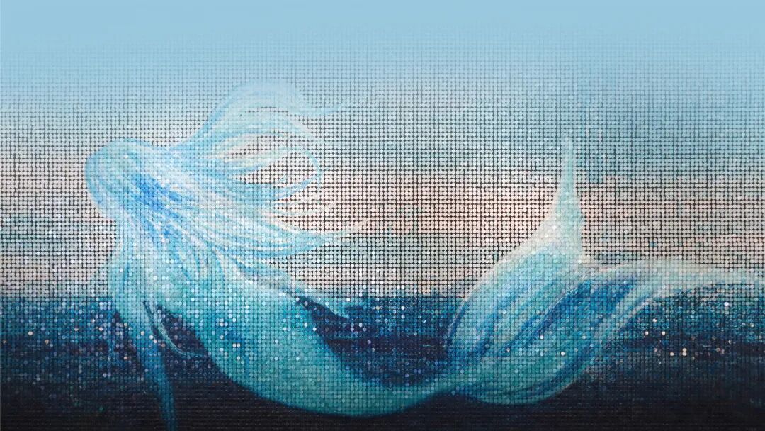 大堂服务台背景墙是由六万多片珍珠母贝串联而成的美人鱼,每当海风轻抚,美人鱼随之游动,实美!