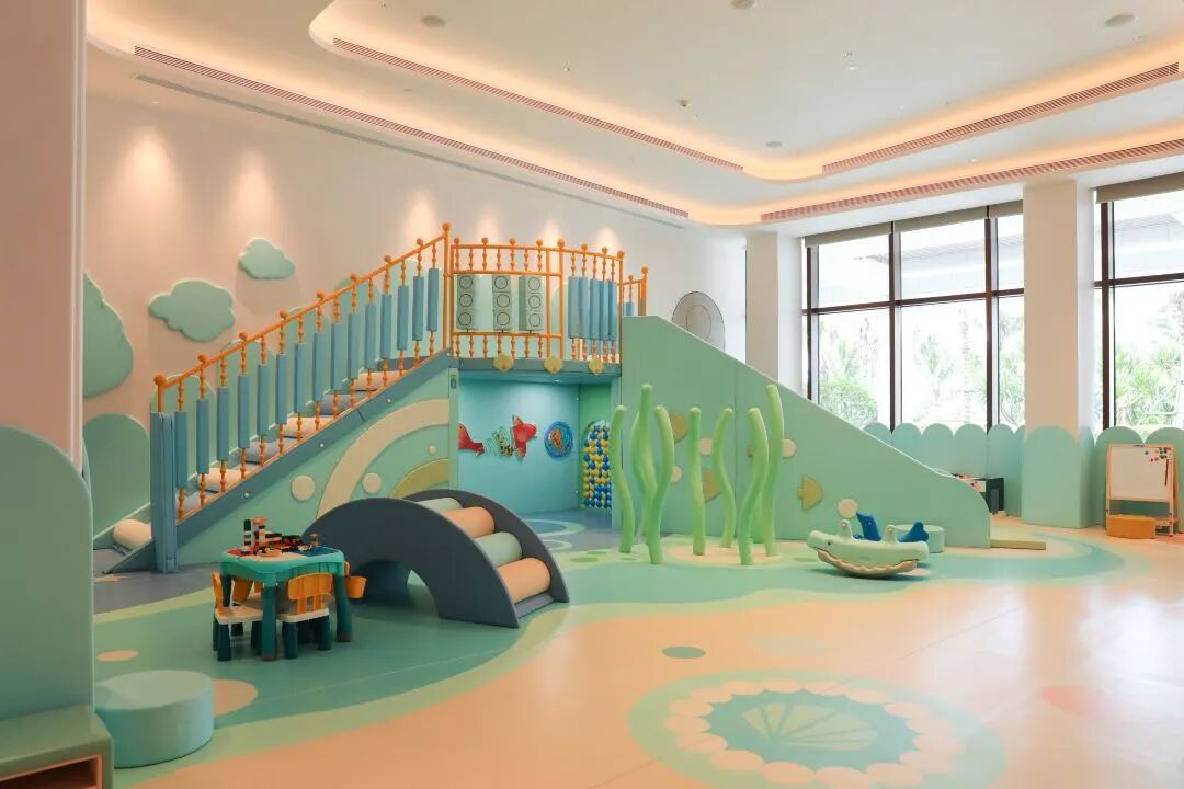 带娃来住也不会伤脑筋,酒店里有个小型室内儿童乐园,海洋主题配色,有滑滑梯、勇士攀岩、童趣淘气堡、趣味挖沙、森林迷宫,花样丰富,我这个大朋友都忍不住想玩一下!