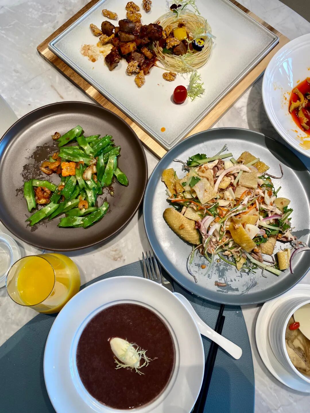 酒店有5间餐吧,承包一日三餐。我们这次住一晚,吃了两顿,总体还真的是挺靠谱的。酒店全日制餐厅名为“福湾”,谐音是美人鱼赠予阿福的“福碗”,以蓝色和沙滩色为主,并融入了海上风帆和海魂条纹等经典航海元素。