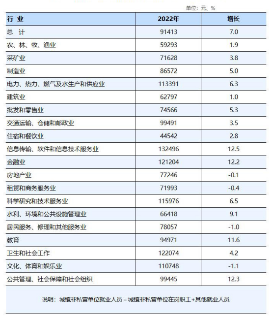 (六)城镇非私营单位就业人员年平均工资为91,413元,各行业城镇非私营单位就业人员年平均工资如下: