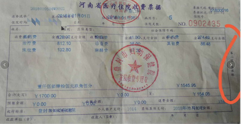 该类收据不能作为发票进行保险理赔:必须要有“财政监制章+医院收费章”;