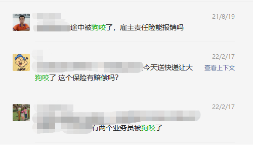 近期又收到被狗咬的理赔咨询,原来是因为业务员在给一顾客送件的过程中被一只突然蹿出来的狗咬伤,然而业务员又不知道谁是狗的主人,无奈之下只能自己到附近医院掏钱打了狂犬疫苗,医生说前前后后要连续打5针才行,一共要花费400元。