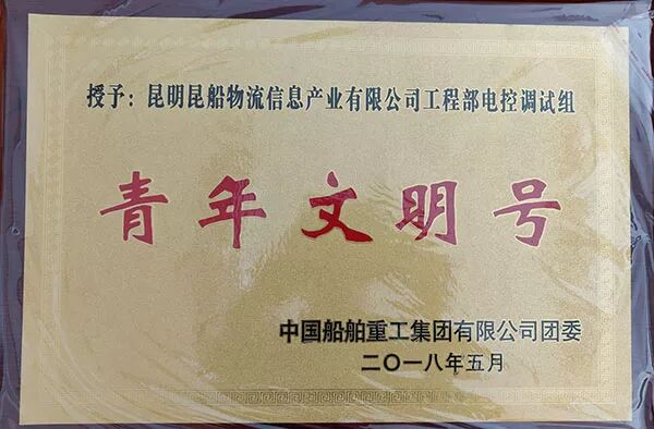 昆船物流公司工程部电控调试组2018年被中船重工团委授予“青年文明号”。